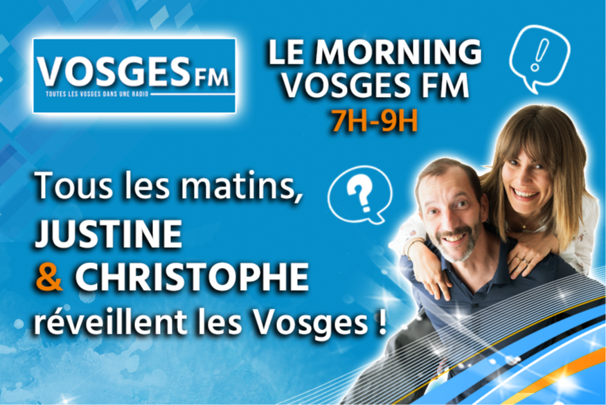 Préparez-vous à démarrer la journée du bon pied avec Justine et Christophe ! Du lundi au vendredi, de 7h à 9h, ils vous réveillent avec le Morning Vosges FM, la matinale qui mêle bonne humeur, infos locales et jeux pour vous faire gagner gros.