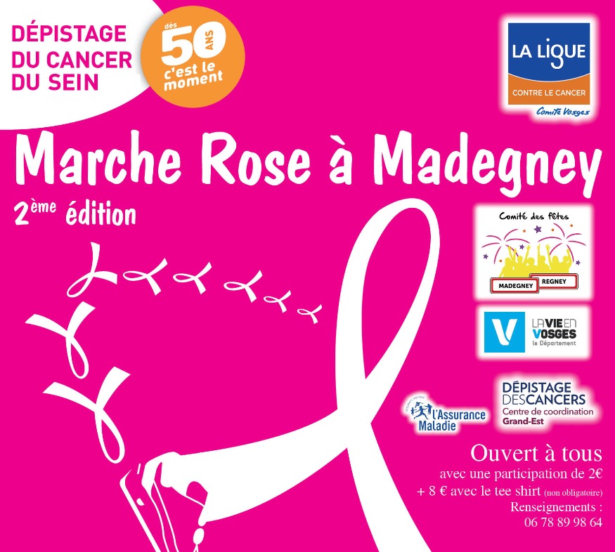 Marchez en Rose dimanche à Madegney-Regney. C'est la deuxième édition organisée par le Comité des Fêtes dans le cadre d'Octobre rose, pour la lutte contre le cancer du sein, en partenariat avec la Ligue contre le cancer.