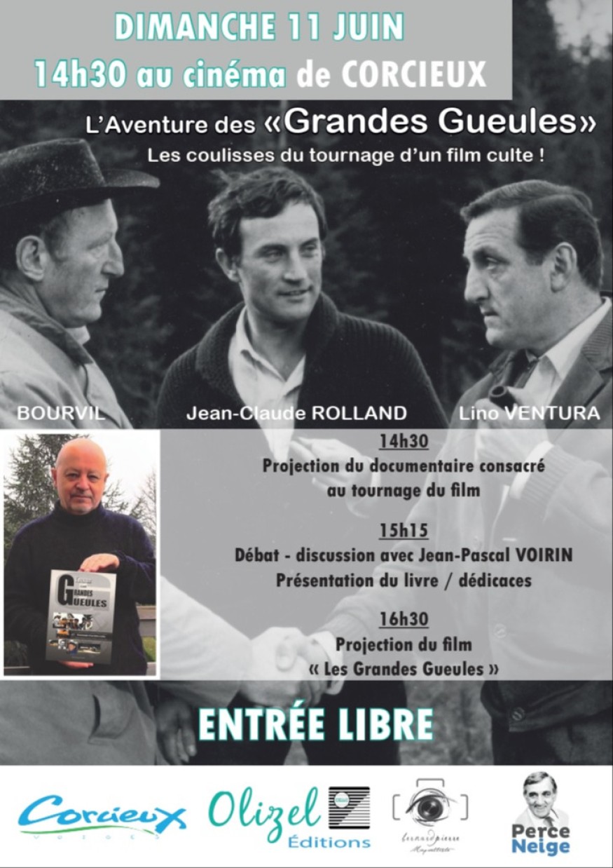Jean-Pascal Voirin, auteur et réalisateur d'un documentaire sur le mythique film "les grandes gueules" vous invite au cinéma de Corcieux ce dimanche 11 juin à 14H30!