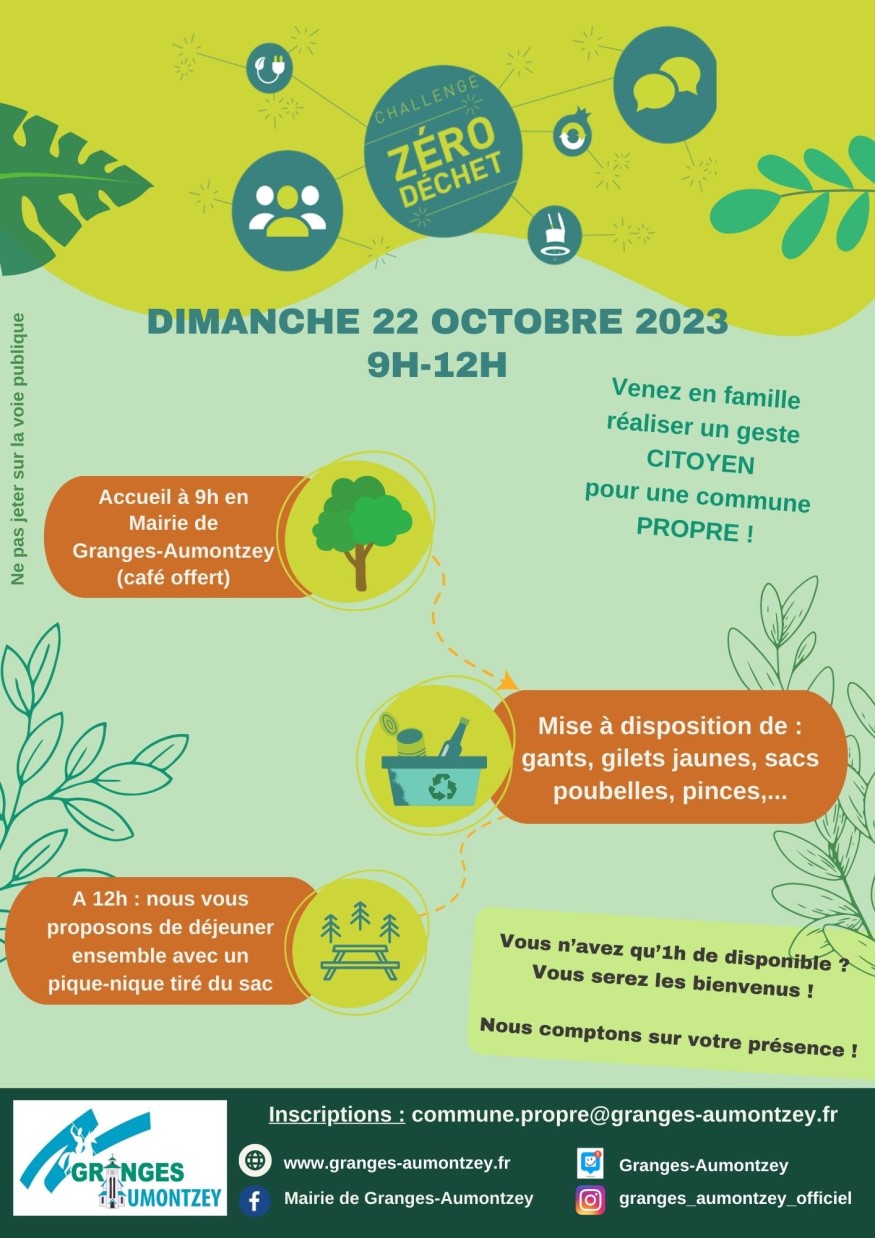 Un challenge zéro déchet se tiendra à Granges ce dimanche 22 octobre à prtir de 9H00.