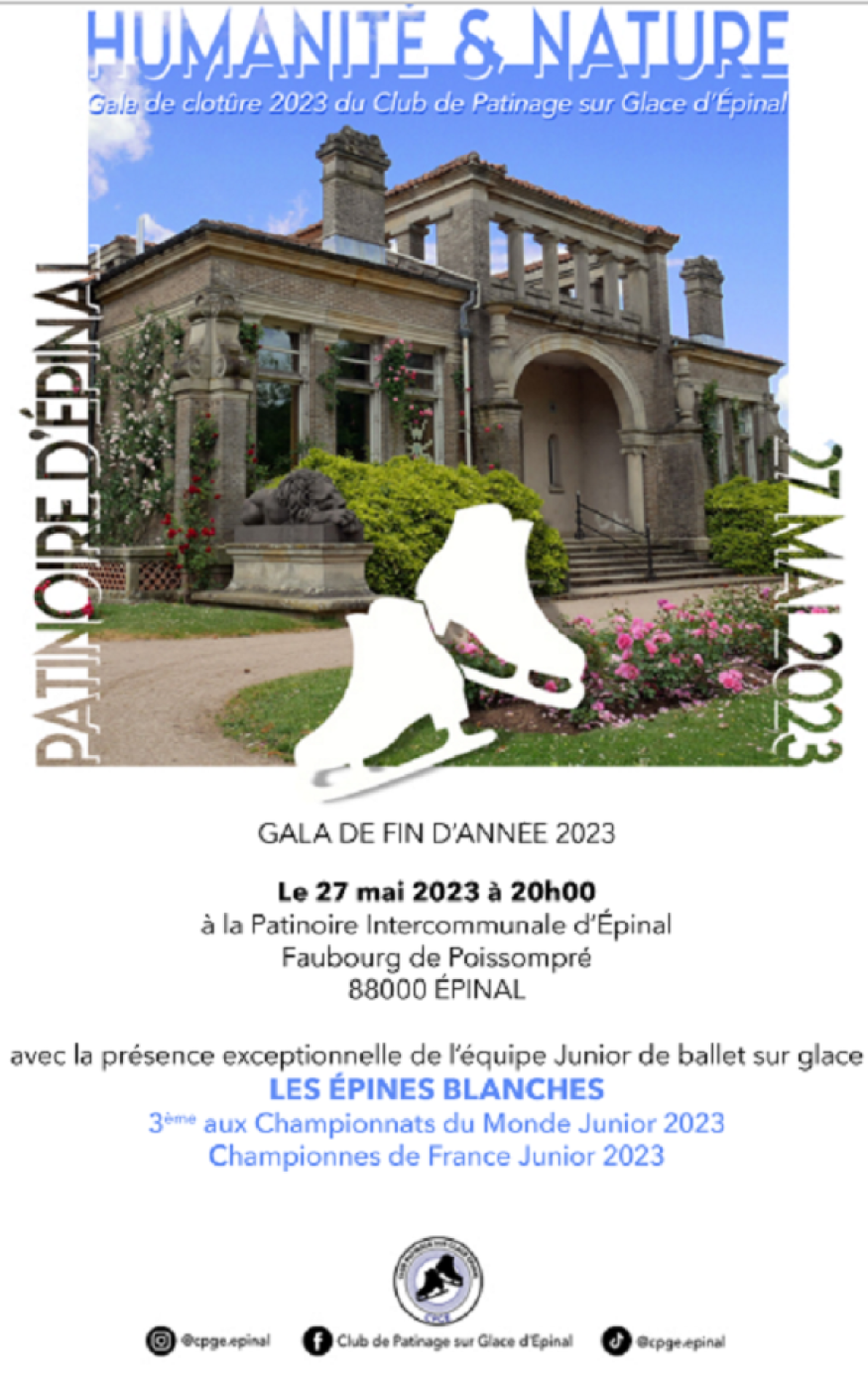 C'est le grand spectacle de fin de saison pour le club de patinage d'Epinal! Rendez-vous ce samedi 27 mai à 20H00 à la patinoire!