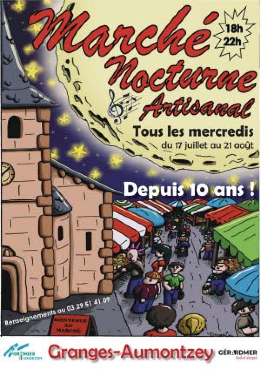 Le marché nocturne artisanal revient à Granges! Elisabeth Roussel, adjointe au maire, vous invite à partir du 17 juillet de 18h00 à 22h00! Un moment de convivialité et d'échanges! Au menu: du miel, des gâteaux, des fruits, du fromage, de la glace, de la bière, des bijoux, du savon, des démonstrations du bois, ... et des animations musicales!