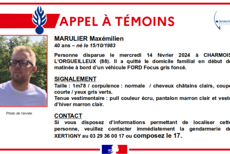 Disparition inquiétante d'un homme à Charmois-L'Orgueilleux