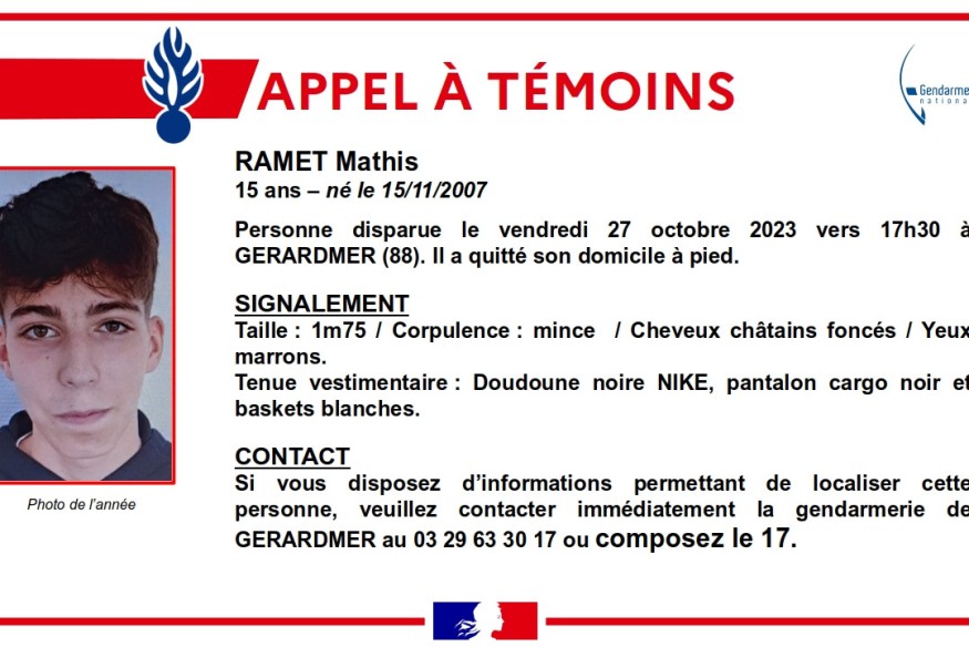 Mathis, adolescent disparu à Gérardmer, retrouvé sans vie