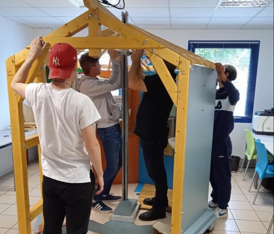 L’intervention est centrée sur une présentation des métiers du Bâtiment au cours de laquelle tous les élèves deviennent les acteurs de la construction d’une maison miniaturisée.