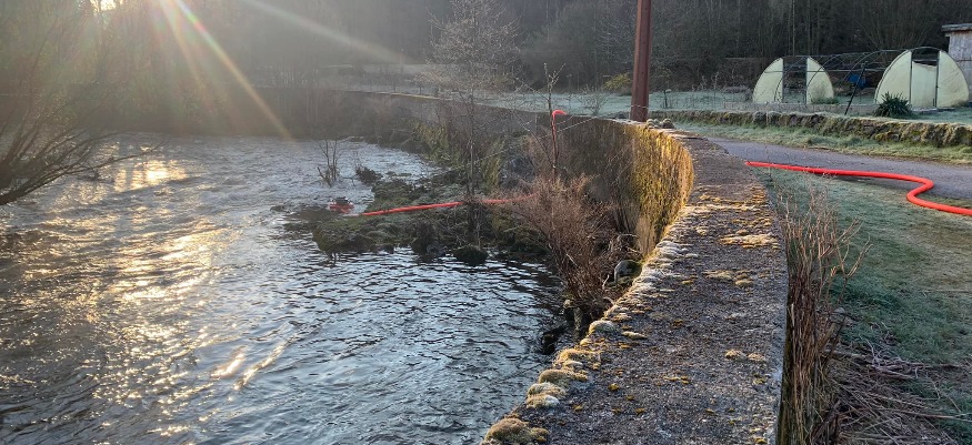 Pollution de la Moselotte ce mercredi après-midi : Des hydrocarbures se sont déversés sur plusieurs kilomètres avant l’intervention des sapeurs pompiers, des gendarmes et des agents de l’office national de la biodiversité.