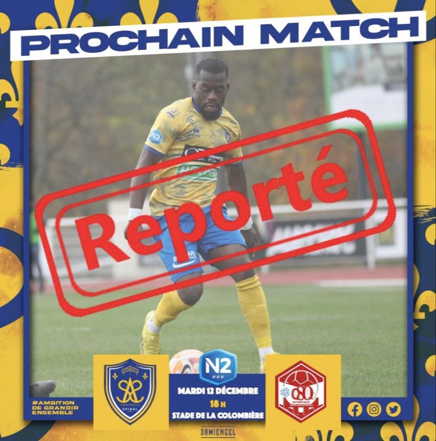 Le match du SAS Epinal face à l'Olympique Saint-Quentinois annulé à cause des conditions climatiques. En effet, le terrain est gelé ! Il devait se déroulé ce mardi à la Colombières. Pour l'instant, pas de nouvelles dates.