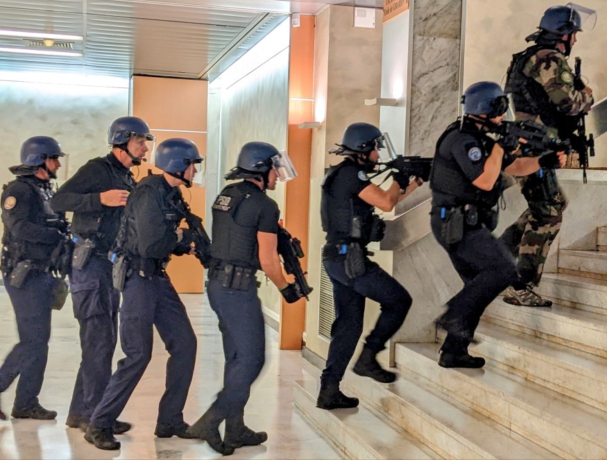 Scénario catastrophe hier à Vittel. Le Palais des Congrès a été pris d'assaut par trois terroristes. Fort heureusement, ce n'était qu'une exercice de sécurité civile organisé par la Préfecture des Vosges, avec les gendarmes, les pompiers et la municipalité.