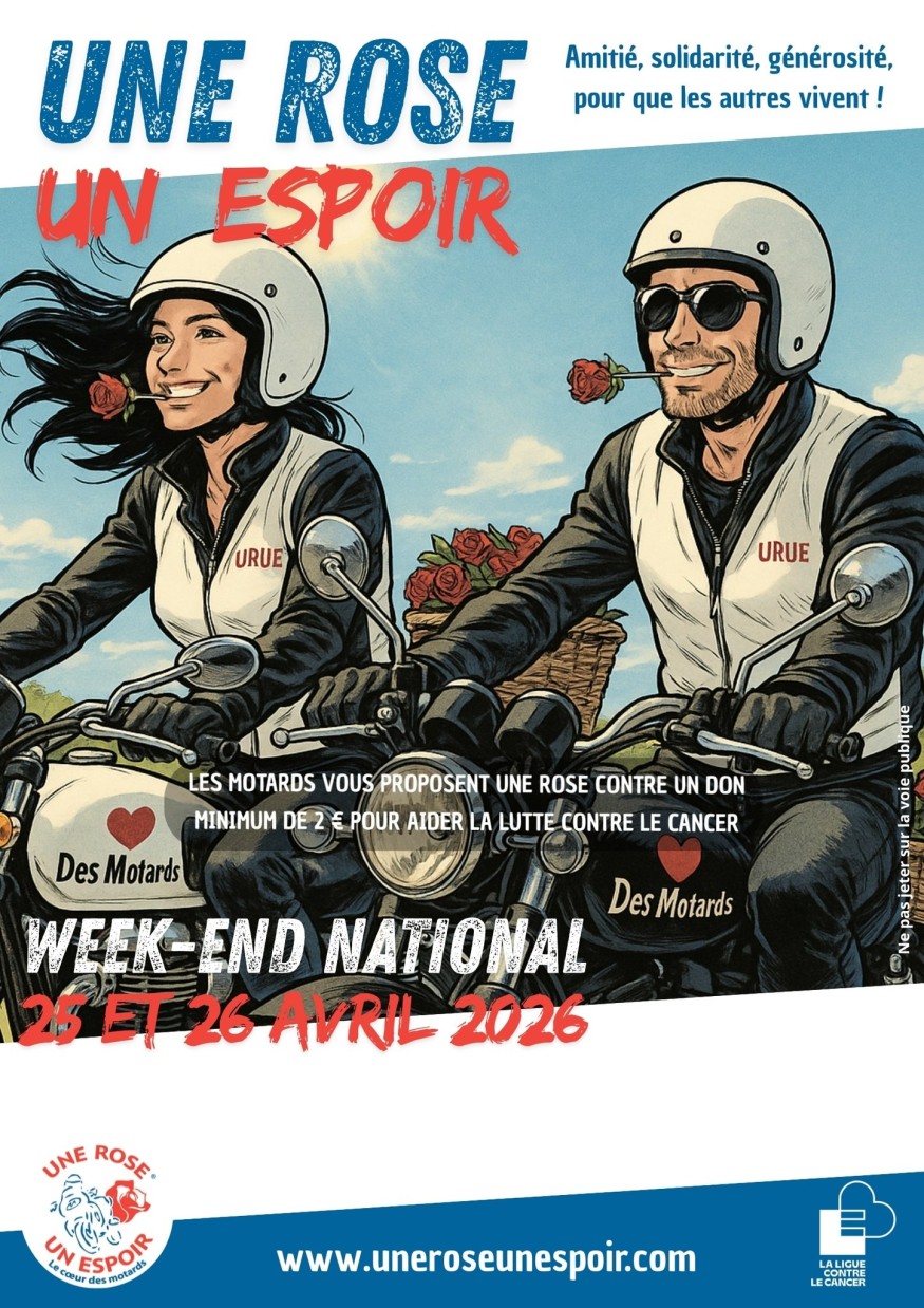 Ce week-end du 25 et 26 avril, préparez-vous à entendre vrombir les moteurs pour la bonne cause ! L'opération solidaire Une Rose, Un Espoir fait son grand retour sur nos routes vosgiennes. Comme chaque année, des dizaines de motards bénévoles vont sillonner nos communes avec un objectif commun et essentiel : récolter des fonds au profit de la Ligue contre le cancer.